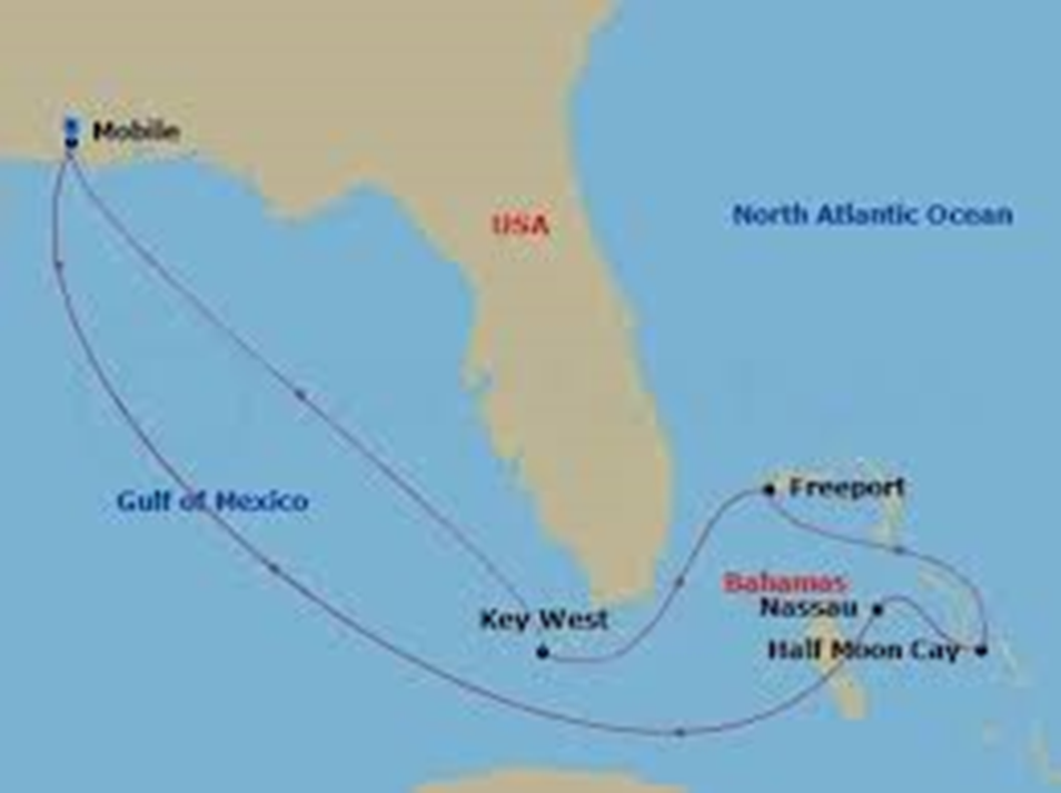 Direct sailing route from Mobile, AL to the Keys, FL.